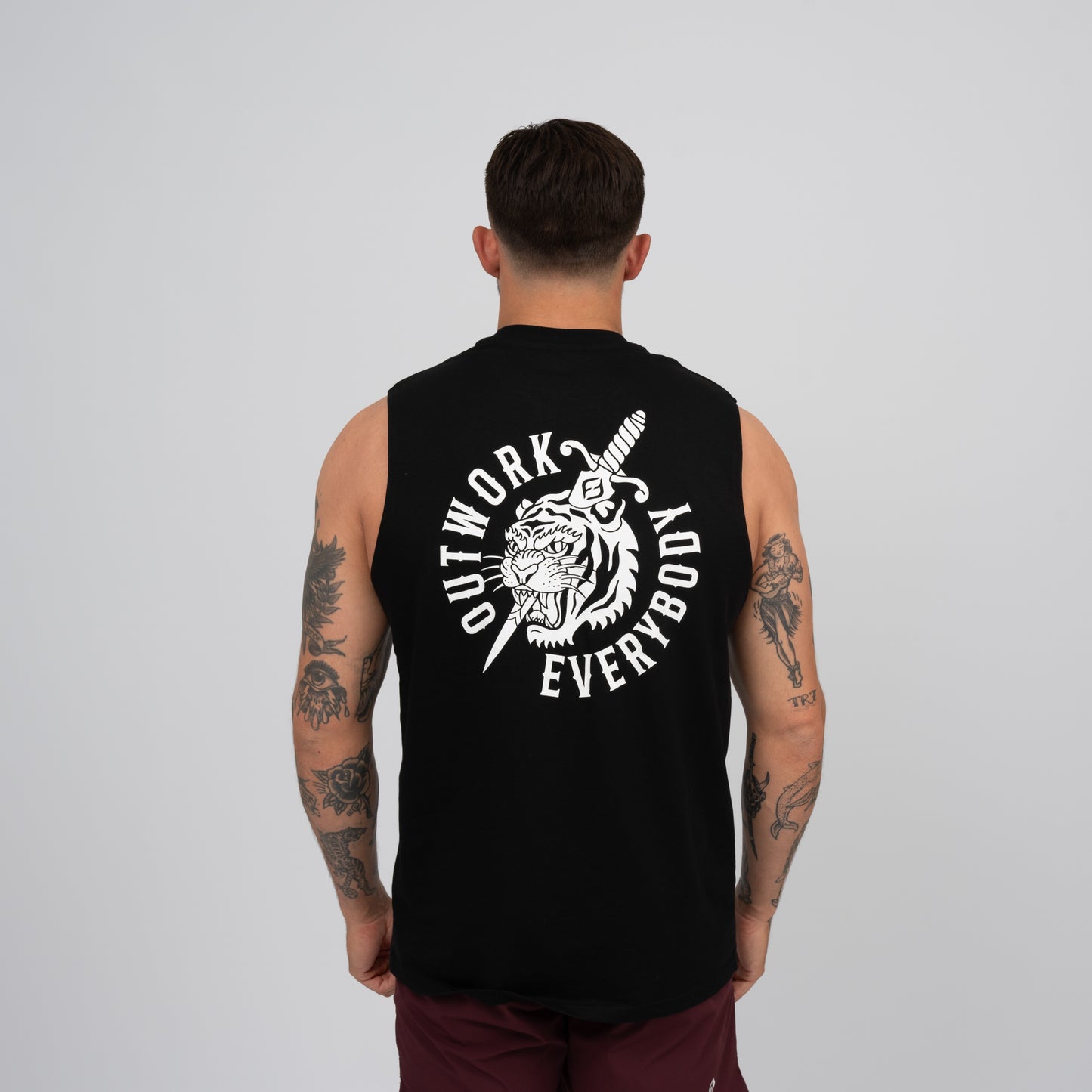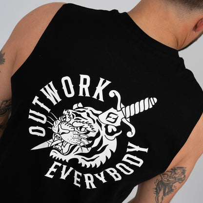 Our culture. Outwork everyone. Wear it. Sleeveless tank, hemmed armhole edges, preshrunk to minimise shrinkage.